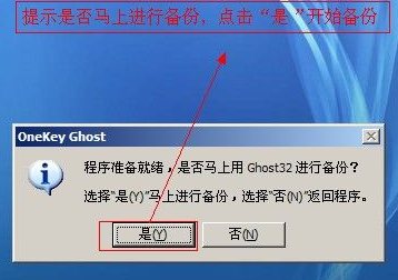 4、點擊確定后,給出一個提示程序準(zhǔn)備就緒,是否馬上備份,點擊“是”馬上進(jìn)行備份