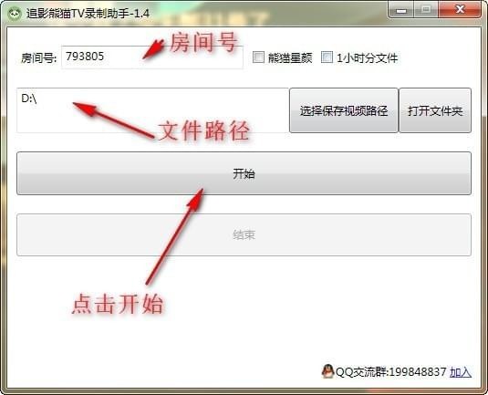 輸入房間號,選擇文件路徑,點擊開始錄制