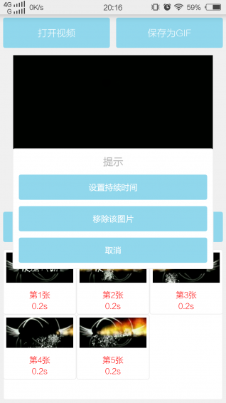 GIF圖片的原理是若干圖片有序地播放,讓人感覺畫面在動(dòng),因此您需要添加幾張有順序有規(guī)律的圖片,先選擇視頻,然后播放,點(diǎn)擊 獲取視頻圖片 按鈕可以獲取該時(shí)刻的視頻截圖,點(diǎn)擊圖片可以設(shè)置該圖片的持續(xù)時(shí)間和移除該圖片