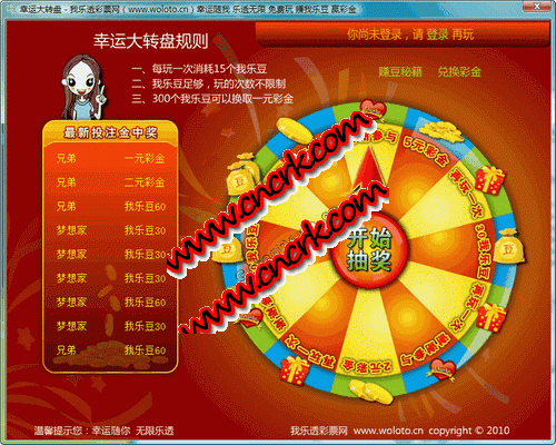 幸運(yùn)大轉(zhuǎn)盤注冊(cè)賬號(hào),免費(fèi)玩,賺我樂豆,換彩金。每天登陸一次都送我樂豆,每玩一次消耗15個(gè)我樂豆,只要有足夠的我樂豆,可玩次數(shù)不限制。
