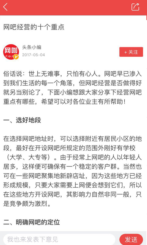 開網(wǎng)咖,上頭條。行業(yè)資訊一網(wǎng)打盡。大咖們一起交流行業(yè)資訊,發(fā)布培訓(xùn)視頻。招聘人才,投遞簡歷。分享裝修風(fēng)格,一起為網(wǎng)咖未來做出努力。