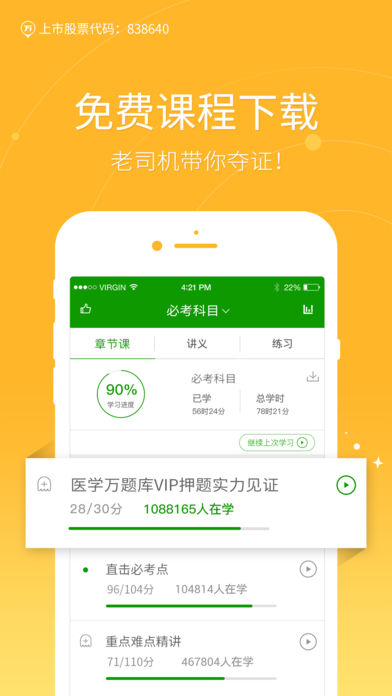 醫(yī)學(xué)萬(wàn)題庫(kù)內(nèi)含完整的、免費(fèi)的、成體系的考試視頻課程、講義,支持離線下載,可隨時(shí)觀看。節(jié)約時(shí)間和腦容量,拋棄冗長(zhǎng)的課本,只把最有用、最有價(jià)值的備考知識(shí)裝進(jìn)腦袋里!