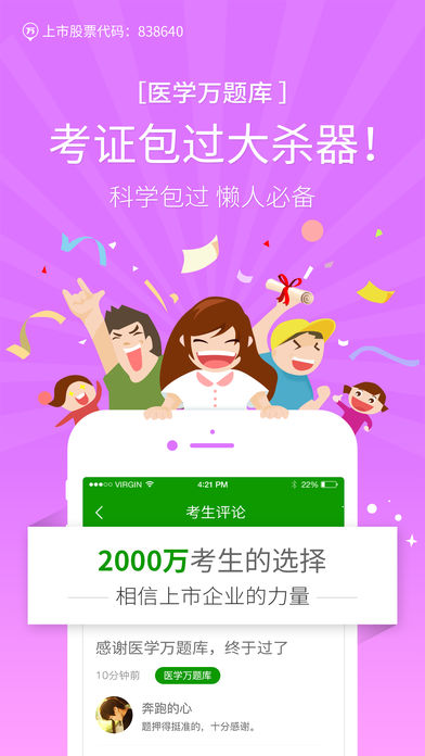 醫(yī)學(xué)萬(wàn)題庫(kù),2017醫(yī)藥考試包過(guò)大殺器!科學(xué)包過(guò),懶人必備!藥師、醫(yī)師、護(hù)士、衛(wèi)生資格領(lǐng)域排名第1的學(xué)習(xí)軟件,考生最喜歡的醫(yī)學(xué)類學(xué)習(xí)軟件!首都的優(yōu)質(zhì)教育資源 + 互聯(lián)網(wǎng)教育黑科技 + 醫(yī)學(xué)界大牛名師 + 改變傳統(tǒng)教育的夢(mèng)想 = 幫助你100% 通過(guò)考試