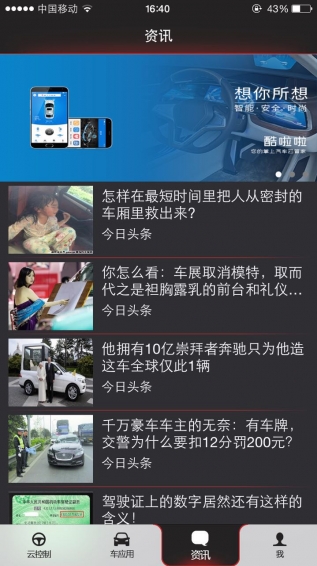 酷啦啦APP是酷啦啦智能車聯(lián)網(wǎng)產(chǎn)品,覆蓋市面上的所有汽車品牌的云控制應(yīng)用。車主可以通過(guò)手機(jī)實(shí)現(xiàn)便捷借車(授權(quán)他人使用車輛)、掌握車狀態(tài)、獲得各類汽車提醒、遠(yuǎn)程控制、電子圍欄、全國(guó)違章查詢等等的便捷掌控。主要功能: