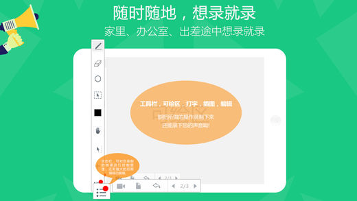 1.通過手寫錄屏寶可以直接在電腦屏幕、電子白板、PPT上進行手動書。2.安裝方便,兼容性好。界面功能漢子標識,易學易上手。視頻錄制格式為可編輯AVI,MP4,F(xiàn)LV三種,滿足各種云平臺應用需求。
