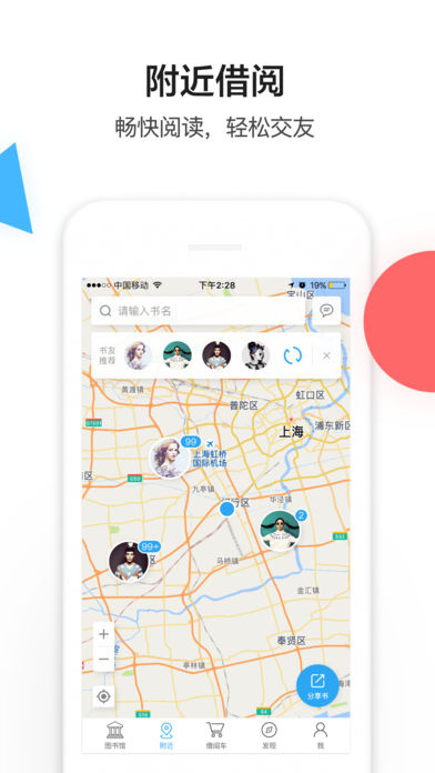 -圖書館:海量圖書館書籍隨心借,首年無(wú)限次免費(fèi)快遞送到家,覆蓋全市的還書點(diǎn),還書更加便捷;-地圖模式:快速查看附近可借閱的紙質(zhì)書,與分享者交流閱讀心得;