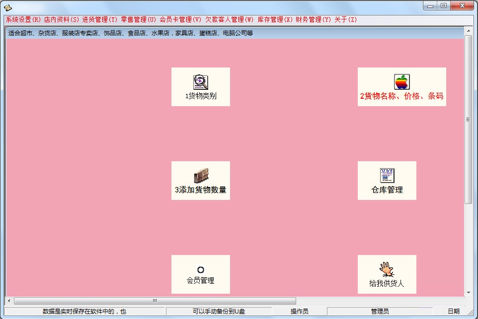 百威超市收銀軟件綠色版功能:權(quán)限管理、功能配置、備份還原