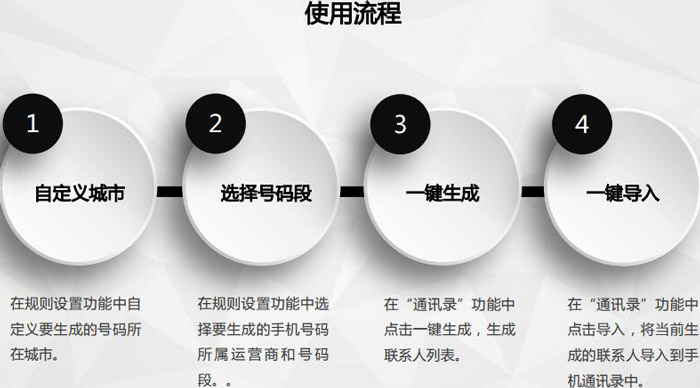1、自定義全國城市和號碼段2、一鍵生成/導(dǎo)入聯(lián)系人