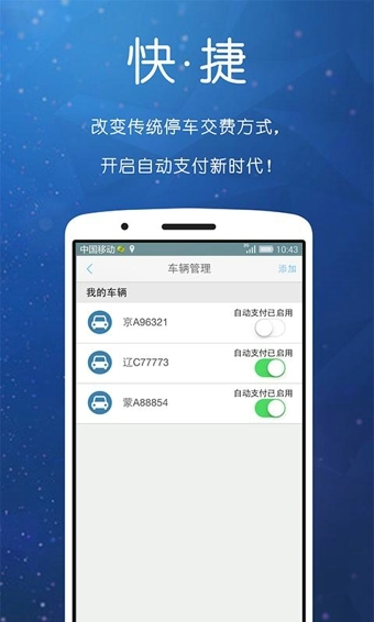 [方便]一鍵查看停車費用、停車時長、停車優(yōu)惠等信息![快捷]進(jìn)出車場不停車,尊享駕車VIP體驗!