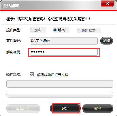 3.文件加密后,雙擊它,會(huì)彈出密碼輸入對(duì)話框,只有輸入正確的密碼才能打開該文件。文件使用完畢退出以后,它自動(dòng)恢復(fù)到加密狀態(tài),無(wú)需再加密。