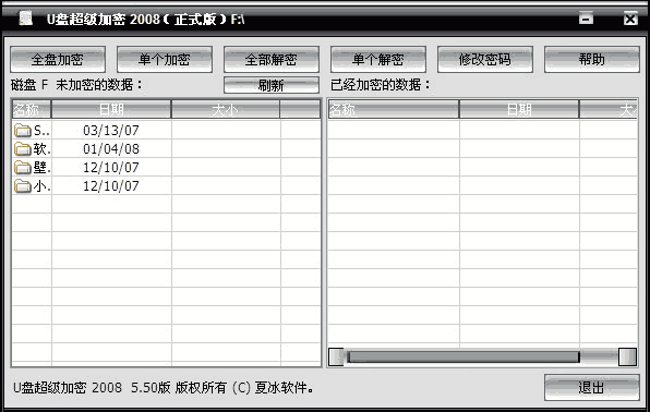 進(jìn)入軟件界面后在左邊能看到你的u盤文件,右邊則是加密區(qū)。