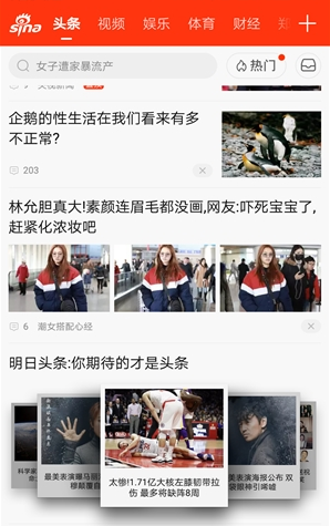 明日頭條則是新浪新聞客戶端給用戶提供的一個期待性閱讀入口。