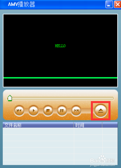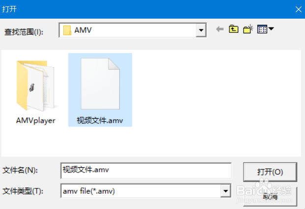進入"AMV播放器"界面,單擊“添加文件”小圖標,在窗口中找到剛轉(zhuǎn)好好的AMV文件,然后單擊“打開”,如下圖:
