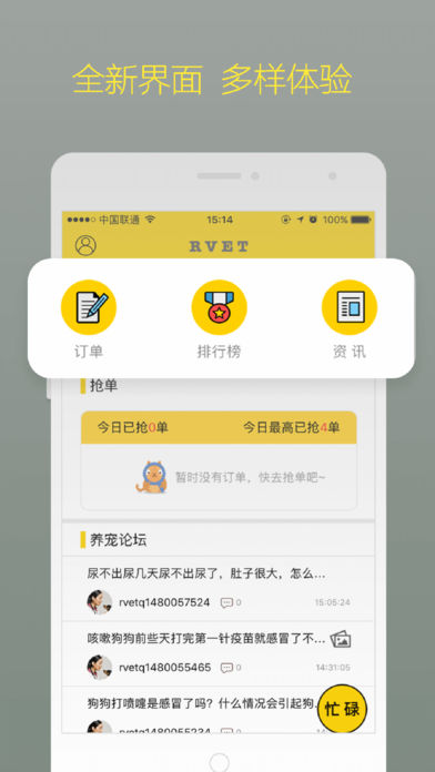 【搶單】時(shí)間自由把控,隨時(shí)搶單,訂單不斷;【接單】隨時(shí)都有預(yù)約問診、美容、疫苗、驅(qū)蟲、寄養(yǎng)等到店服務(wù);