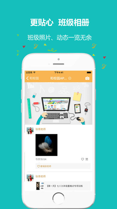 ·學(xué)校專屬:針對(duì)中小學(xué)及幼兒園教師,提供專業(yè)便捷的功能應(yīng)用,從用戶需要出發(fā),涵蓋各學(xué)段的專屬功能服務(wù)。·立體互動(dòng):圍繞家校共育,實(shí)現(xiàn)學(xué)校、教師與家長(zhǎng)間的多元化互動(dòng),包括公告、圖文、語音、圈子、單聊、群聊等。