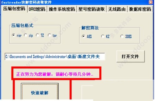fastreader快解密碼讀取軟件是一款非常優(yōu)秀的壓縮文件密碼破解工具,fastreader中文版能夠?qū)ψ畛R姷膔ar、zip、7z等壓縮格式文件進(jìn)行密碼破解,并且不論壓縮包密碼長短,幾分鐘就可以破解一個(gè)壓縮包文件,讓你再也不用到處去問找密碼了。