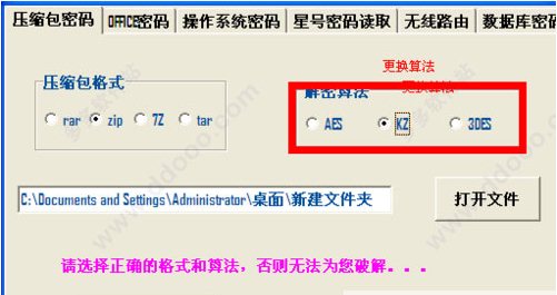 如果提示提示“破解失敗,請(qǐng)換一種方法重試!”的話,則需要在第二步中更換解密算法
