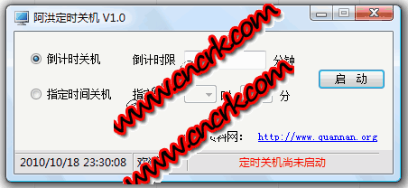 軟件綠色、免費,可任意傳播使用。包含倒計時關(guān)機、定時關(guān)機等兩種方法。