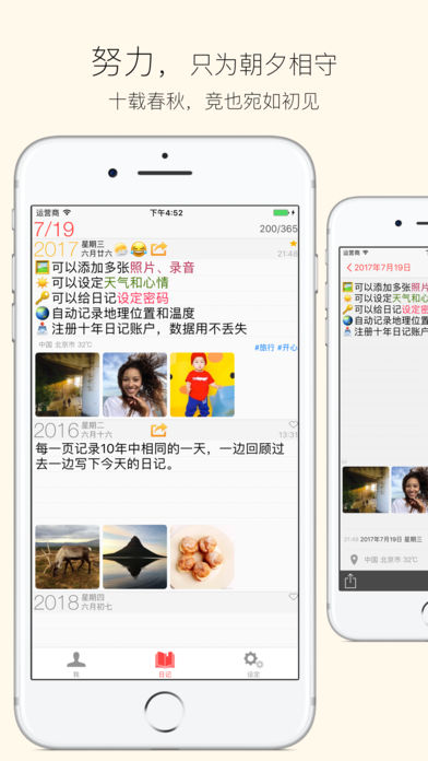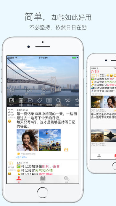 數(shù)十萬人使用,讓人愛不釋手的“十年日記”。寫下今天日記的同時,可以回顧過去每年的今天發(fā)生了什么,每天只寫4行,毫無壓力,讓寫日記成為每天最放松的時光。