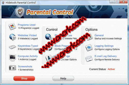 Hidetools Parental Control V5.6.8 英文綠色特別版 Hidetools Parental Control 是一款監(jiān)控軟件,監(jiān)控的內(nèi)容包括程序,網(wǎng)站,按鍵,屏幕截圖和其他的一些計(jì)算機(jī)活動(dòng)。