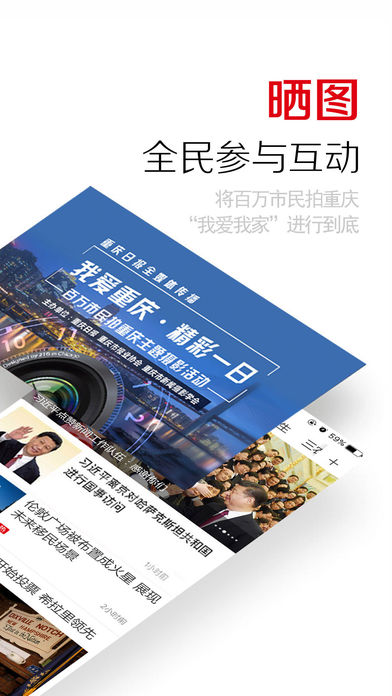 重慶日報手機版是一款重慶居民必備的新聞閱讀軟件。用戶可以瀏覽到豐富的熱點資訊、頭條新聞,足不出戶了解天下大事,同時還可以參與“我愛我家”曬圖活動,展現(xiàn)你眼中的最美重慶。