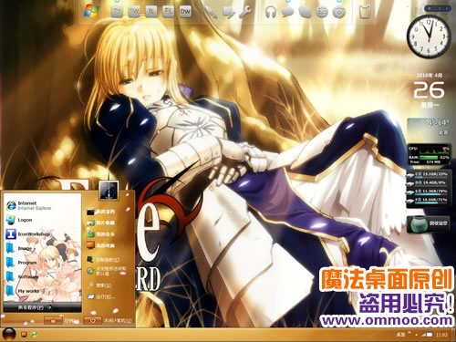 魔法桌面原創(chuàng)XP仿windows7桌面主題——命運之夜。本主題包含三種字體版本,默認(rèn)是宋體版,您可以在“外觀”-“字體大小”處切換至其他字體版本。此主題還附帶精美的仿windows7登陸界面哦