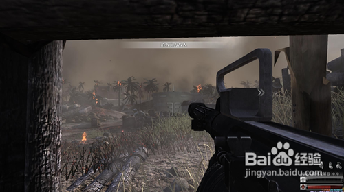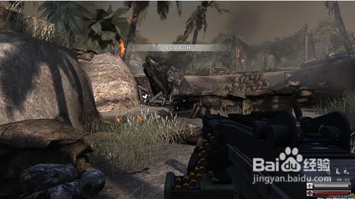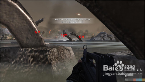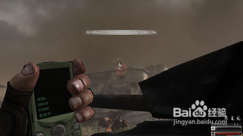 跑到坦克后面安全區(qū),按6掏出定位器,慢慢向左移動,然后瞄準(zhǔn)光標(biāo)處,按鼠標(biāo)左鍵,然后耐心等一會就會有炮火炸掉碉堡(這里要注意,敵兵是無限刷的,所以不要浪費你的子彈),炸掉碉堡后,根據(jù)提示往右邊沖刺,再次進入壕溝。