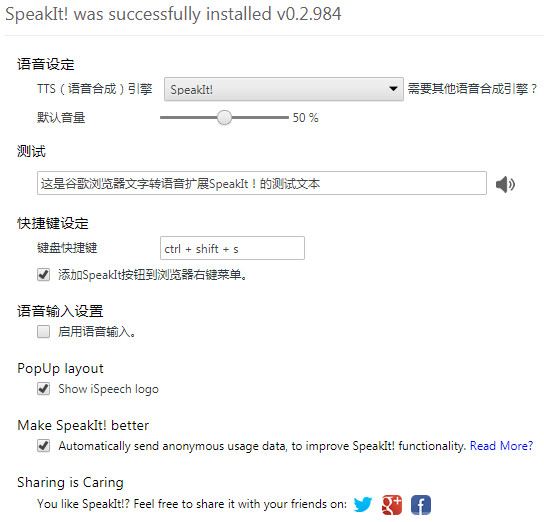 SpeakIt是一款可以使用語(yǔ)言自動(dòng)檢測(cè)的文本到語(yǔ)音技術(shù)讀取選定的文本,把Chrome瀏覽器中的文字讀出來(lái)的chrome插件,做到這些用戶只需要選中想要“聽(tīng)”的文本,當(dāng)然還要安裝SpeakIt插件。SpeakIt將文本轉(zhuǎn)換為語(yǔ)言,以便您不再需要閱讀,只需要閉上眼鏡聽(tīng)一聽(tīng)就好了。是不是很方便呢?【使用方法】