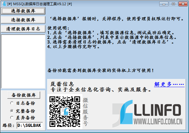 MSSQL數(shù)據(jù)庫(kù)日志清理工具是一款實(shí)用的數(shù)據(jù)庫(kù)日志清理軟件,支持SQL多個(gè)版本,同時(shí)支持備份數(shù)據(jù)庫(kù)日志,對(duì)于數(shù)據(jù)庫(kù)開(kāi)發(fā)的用戶是一款必備的工具之一,使用時(shí)需要一管理員權(quán)限運(yùn)行,有需要的朋友歡迎下載使用。【使用說(shuō)明】