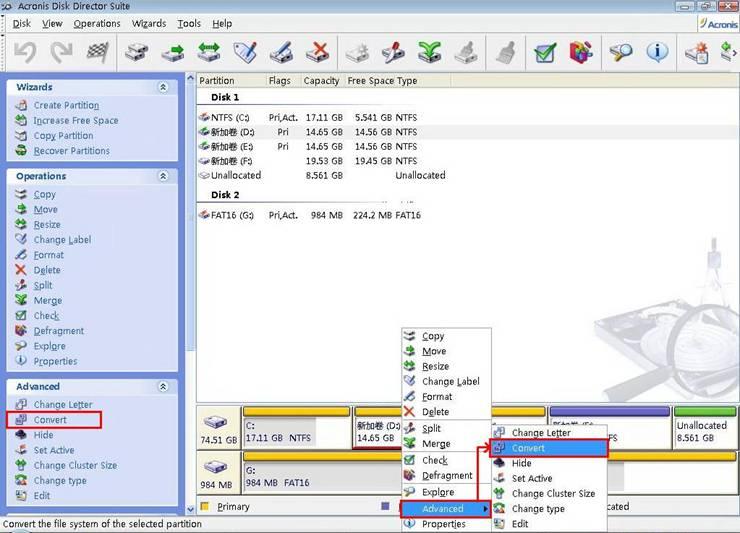 Convert:轉(zhuǎn)換,用這個可以更改選擇的分區(qū)文件格式與分區(qū)類型,例如把文件格式為FAT32的改為NTFS,把主分區(qū)改為邏輯分區(qū)(活動分區(qū)慎用,直覺告訴我的,筆者目前沒有試過,也不知道改之后的后果是蝦米~)