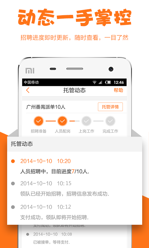 【招聘更高效】兼職貓擁有600萬大學(xué)生兼職人才庫,推出“發(fā)布托管招聘”,一鍵托管,專業(yè)領(lǐng)隊幫您快速招聘,體驗省心省力的招人快感。【管理更規(guī)范】兼職貓可以對應(yīng)聘者實現(xiàn)查看簡歷,即時溝通,一鍵錄用,批量簽到,薪酬結(jié)算等方面的管理。