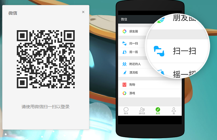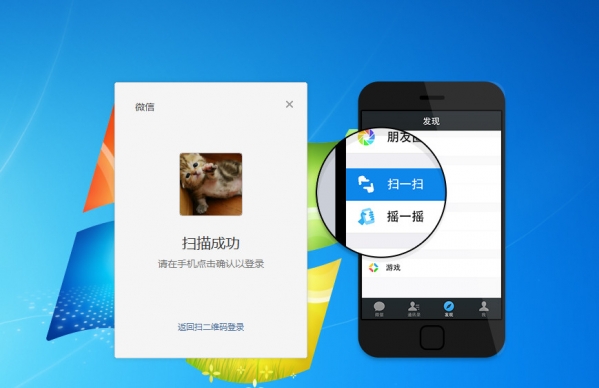 首次登陸,使用手機(jī)打開微信->發(fā)現(xiàn)->掃一掃,掃描電腦上的二維碼,在手機(jī)上點(diǎn)擊綠色按鈕“確認(rèn)登錄“;后續(xù)再次登錄時(shí),僅需打開電腦上的客戶端,點(diǎn)擊“登錄”按鈕,手機(jī)端會(huì)提示一鍵確認(rèn)。