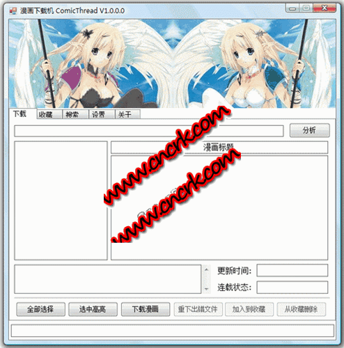 ComicThread漫畫下載機 V1.0.0.1 簡體中文綠色免費版 ComicThread是一個免費的在線漫畫下載程序,純綠色軟件,不會修改注冊表或向系統(tǒng)目錄拷貝文件。集成了在線漫畫下載、收藏、自動更新漫畫、搜索漫畫等功能。ComicThread最大的特點是多線程分析和下載,能一邊分析圖片鏈接一邊下載,可以顯著提高下載漫畫的速度。