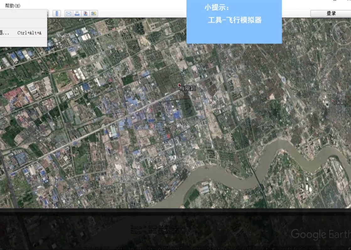 點(diǎn)擊“工具欄”下的“飛行模擬器”可以模擬飛行