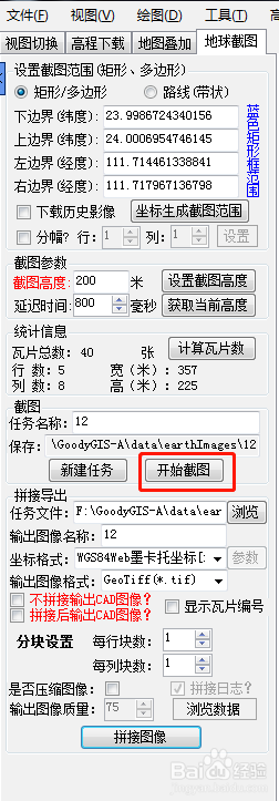 設(shè)置截圖高度,數(shù)值約小,圖片越清晰。然后點(diǎn)擊“計(jì)算瓦片數(shù)量”。注意:試用版的谷歌地球,瓦片數(shù)量不能超過300,超過300要重新設(shè)置截圖高度。