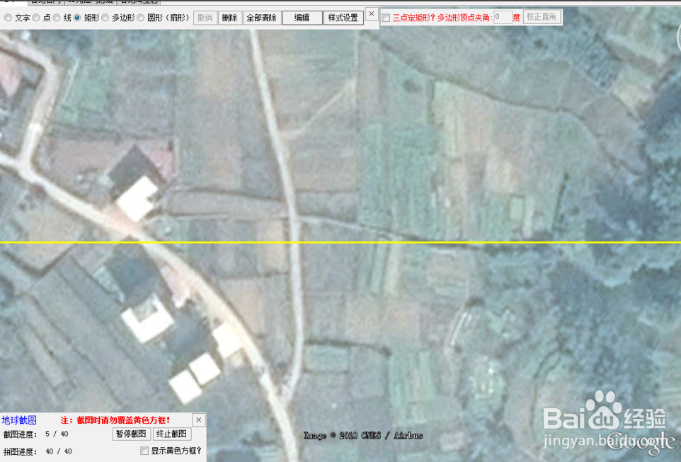 打開“谷歌地球”,在谷歌地球上找到你要下載的圖紙范圍,在工具欄中“繪圖”--“矩形”