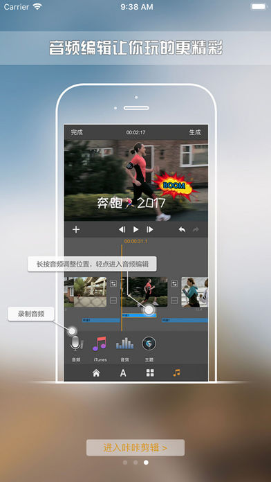 專業(yè)級視頻剪輯:提供視頻拍攝、手機(jī)視頻的直接剪輯,支持幀精確的片段Trim修葺、過渡轉(zhuǎn)場,應(yīng)用內(nèi)預(yù)制了數(shù)十種免費(fèi)的實(shí)用風(fēng)格特效與轉(zhuǎn)場動畫。強(qiáng)大的音頻制作:提供獨(dú)立的音頻編輯軌道,應(yīng)用內(nèi)預(yù)制了十余種主題背景音樂,支持導(dǎo)入移動平臺上的本地音頻文件,支持配音功能,音頻片段可自由移動、編輯調(diào)整。