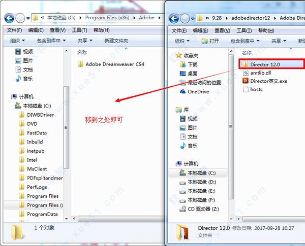 3、現(xiàn)在我們要將主文件夾Director 12.0移到電腦中沒(méi)有中文字樣的目錄中,小編是放在如圖“C:\Program Files (x86)\Adobe”中;
