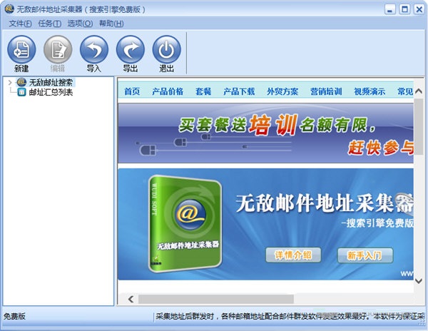 無(wú)敵郵件地址采集器破解版是一款完全免費(fèi)的郵件地址采集工具。該工具可精確搜索網(wǎng)易郵箱中的郵件地址,可精準(zhǔn)到市,一鍵導(dǎo)出,快速保存,也可自己手工添加特定郵件地址。.