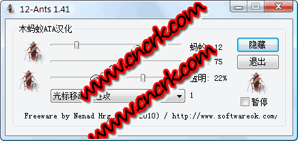 12-Ants:看到 12 只或更多的螞蟻在桌面上穿梭;你會(huì)不會(huì)頭皮發(fā)麻? 渾身發(fā)癢? 電腦前坐久了,或許這些亂爬的小家伙們會(huì)給你帶來(lái)一點(diǎn)樂(lè)趣... 無(wú)需安裝,可以從桌面執(zhí)行,也可以在一個(gè) U 盤或其他存儲(chǔ)設(shè)備中運(yùn)行。