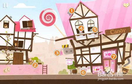 偷走了蛋糕,你會(huì)來(lái)到屋頂,這個(gè)階段,小白鼬會(huì)出現(xiàn)在蛋糕店的櫥窗里,點(diǎn)走它;撿走屋頂上的風(fēng)車(chē),然后點(diǎn)掉廚師屋頂上的煙囪,從黃色屋頂?shù)挠覀?cè)下到地面;