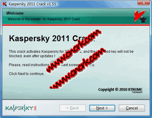 這個卡巴斯基2011工具(Kaspersky 2011 Crack)可以激活卡巴3700天,防黑名單,像正版一樣自動更新