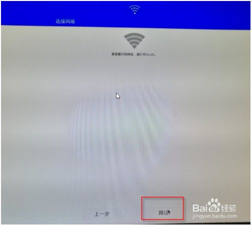10、接下來就是連接WIFI。由于我是臺(tái)式電腦的,沒有無線功能。沒關(guān)系,這個(gè)不影響聯(lián)網(wǎng)使用。我們這里選擇“跳過”。