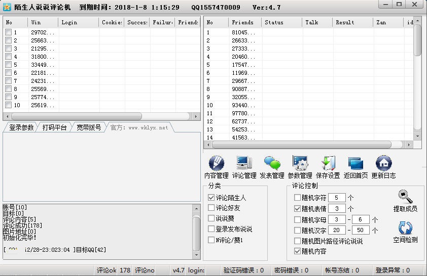 陌生人說說評論機,支持說說帶圖發(fā)表,支持評論前點贊,支持說說內(nèi)容顯示圖片數(shù)字,可評論陌生人空間說說(前提是空間可以訪問)【軟件特點】