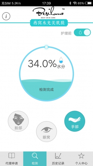 1、智能的肌膚水分檢測功能2、動態(tài)的展現(xiàn)測試記錄功能