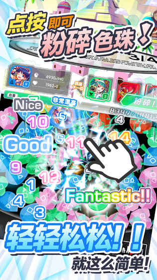 1) 只要點按就可擁有「超爽快」的體驗!《粉碎狂熱》中只要透過點按的簡單操作就可以體驗到最高級的「爽快感」。只要1次點按就可以連鎖粉碎色珠。超華麗效果的粉碎技能、一發(fā)逆轉(zhuǎn)的狂熱模式等,多樣化的系統(tǒng)讓你感受更多的「爽快感」!