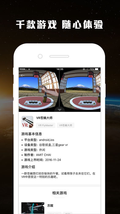 愛玩VR是目前國內(nèi)唯一致力于虛擬現(xiàn)實(shí)(VR)資訊傳播和資源推薦的中文綜合類APP,擁有最完整的VR設(shè)備和VR資源庫,每天給你推薦最好玩的VR資源,全年無休為你送上最新VR資訊。在這里你看不到濫竽充數(shù)的冒牌VR內(nèi)容或者泛濫成災(zāi)的3D電影,我們只推薦給你真正代表未來的視聽娛樂體驗(yàn)!【軟件特點(diǎn)】