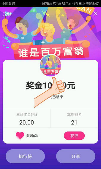 5. 邀請(qǐng)新用戶參與一次答題,你就能獲得復(fù)活道具。