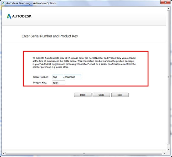 7、輸入序列號“066-066666666”,輸入密鑰“128I1”