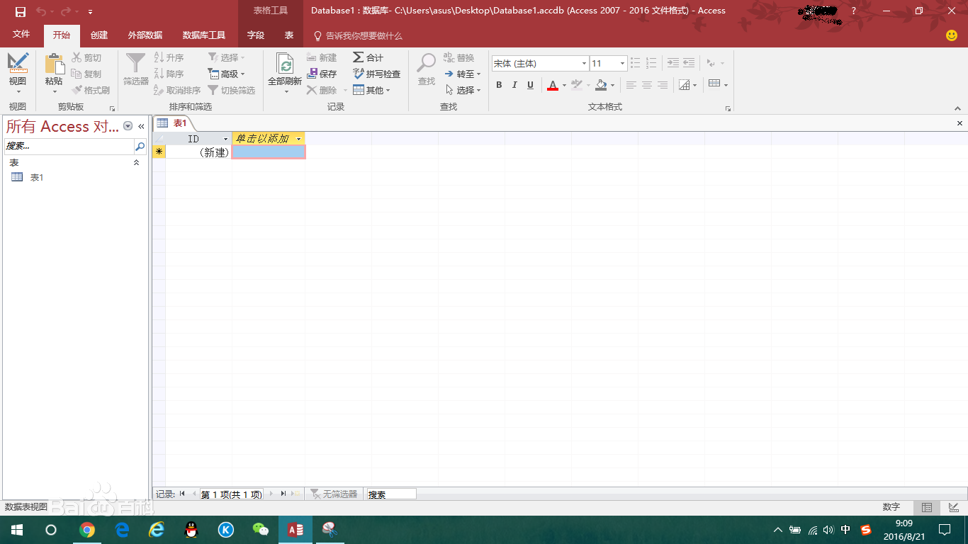 接下來(lái)創(chuàng)建一張表:點(diǎn)擊頭部導(dǎo)航“創(chuàng)建”-->“表”-->先保存(ctrl+s)-->編輯表名稱。